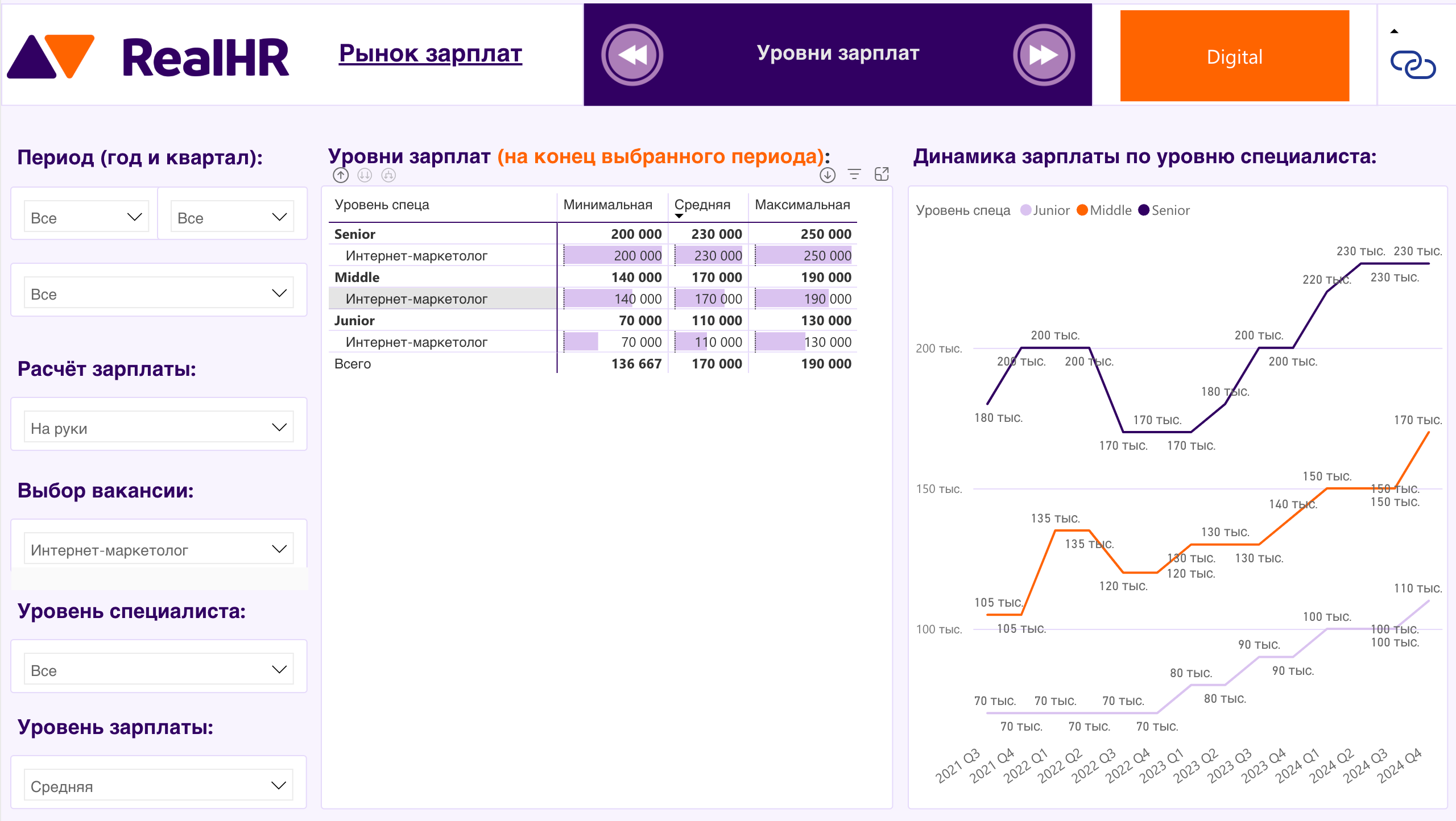 Средняя зарплата маркетолога в Москве начинается от 110 тысяч рублей для начинающих специалистов, 170 тысяч берут спецы с опытом 2-3 года и 230-250 тысяч рублей - нормальная зарплата для опыта 3-5 лет и больше.